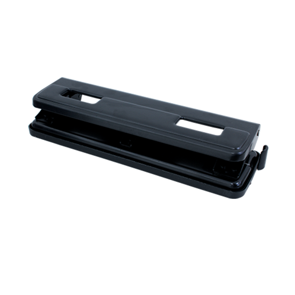 Perforadora de la marca Total Office, de 3 orificios fabricada en metal, tapa base de plástico y regla para centrado entre sus orificios. Gracias a su charola recolectora mantiene tu lugar de trabajo limpio y libre de desperdicios.