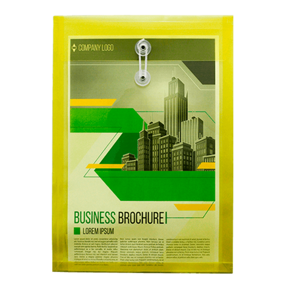 Sobre de la marca Total Office, de plástico, con hilo que asegura el contenido, colores translúcidos brillantes para una fácil identificación de documentos y resistente a la humedad.